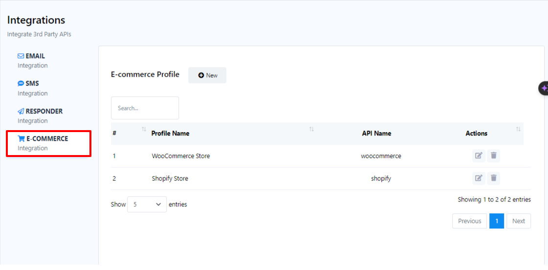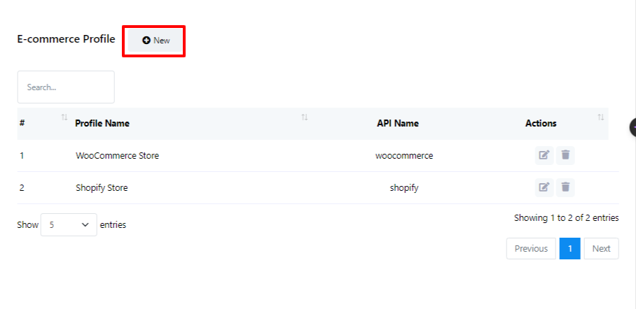 - Para configurar un nuevo perfil de proveedor de servicios Responder, haga clic en el botón "Nuevo" junto a Perfil de comercio electrónico.