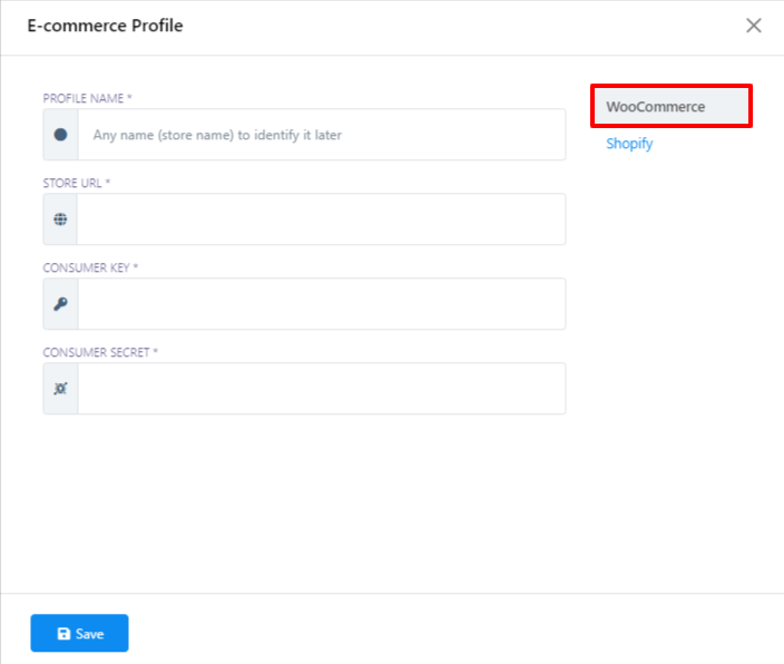 - A los efectos de esta guía, demostraremos el proceso utilizando WooCommerce como el proveedor de servicios de respuesta elegido. Por lo tanto, haga clic en la opción `WooCommerce`.