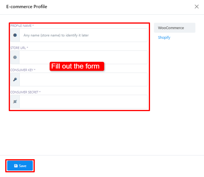 - Ahora, procede a completar el formulario para crear tu perfil de WooCommerce. La información necesaria para completar este formulario se puede encontrar en su cuenta de WooCommerce.