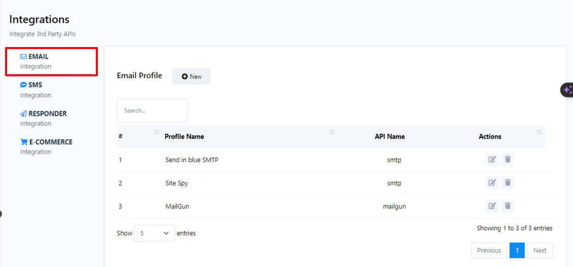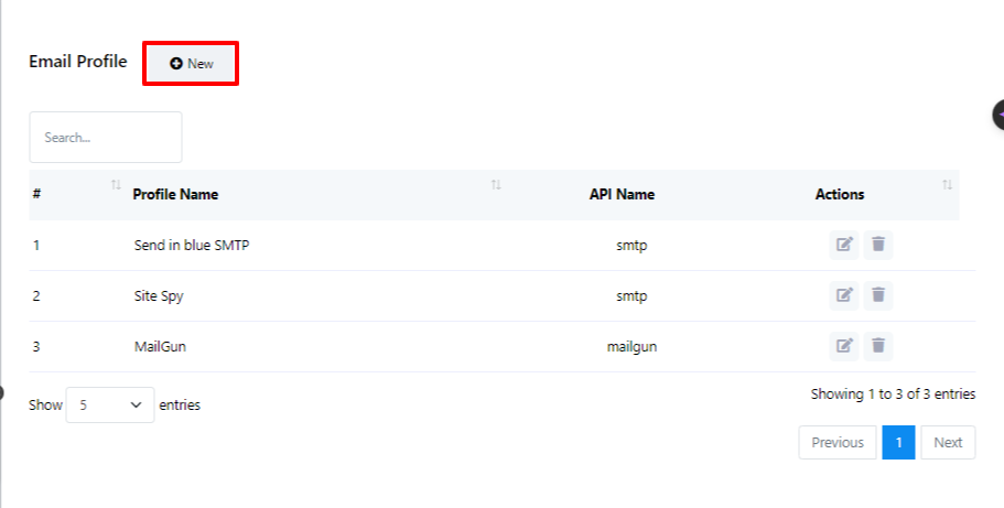 - Para configurar un nuevo perfil de proveedor de servicios de correo electrónico, haga clic en el botón "Nuevo" junto a Perfil de correo electrónico.