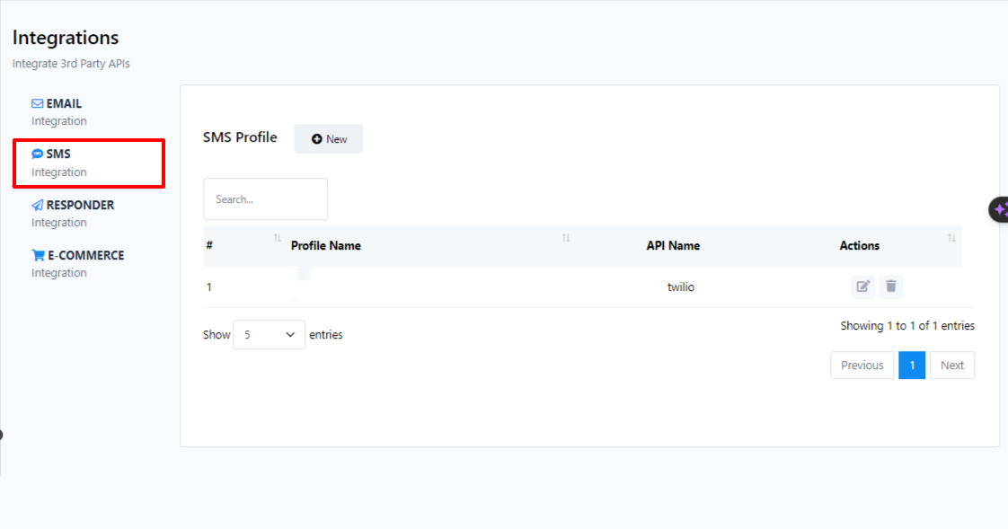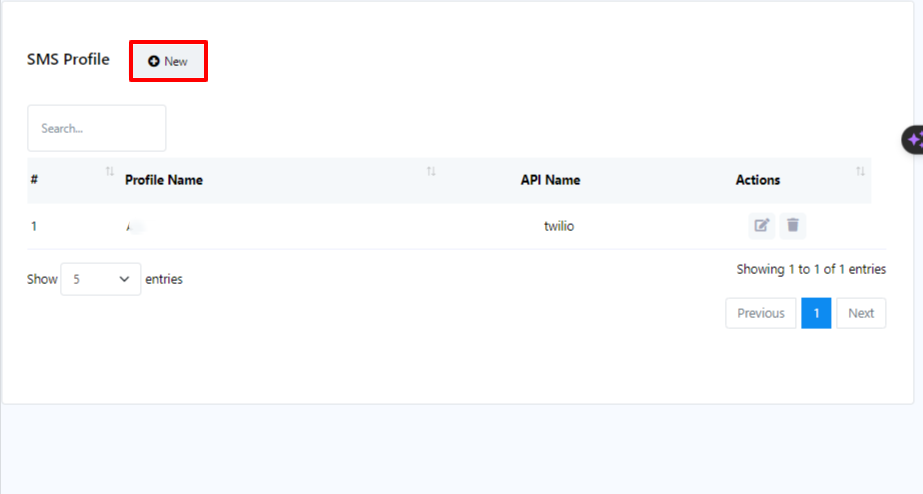 - Para configurar un nuevo perfil de proveedor de servicios de SMS, haga clic en el botón "Nuevo" junto a Perfil de SMS.