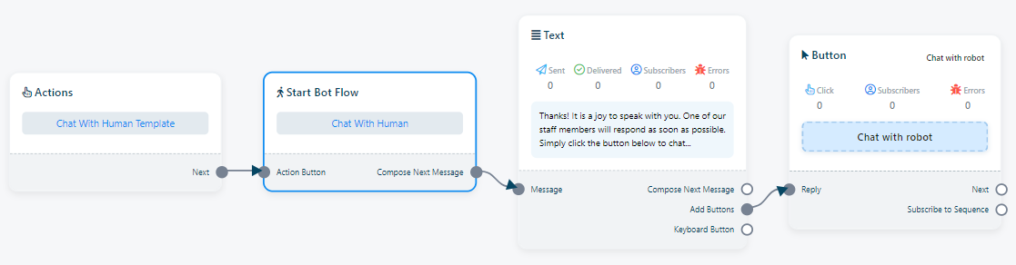 - Haga clic en "Chatear con humanos" para adaptar la respuesta del bot a esta interacción.