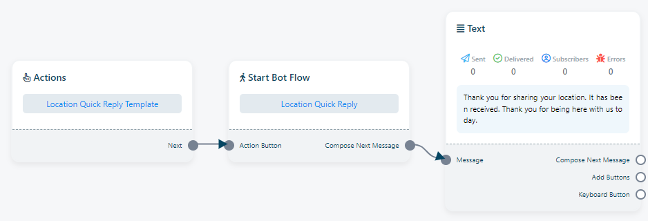 Respuesta de ubicación: la "Respuesta de ubicación" es otra plantilla de mensaje preestablecida diseñada para situaciones en las que un bot recibe una ubicación o dirección de un usuario. Los usuarios pueden aplicar esta respuesta de ubicación a cualquier bot dentro de su sistema.