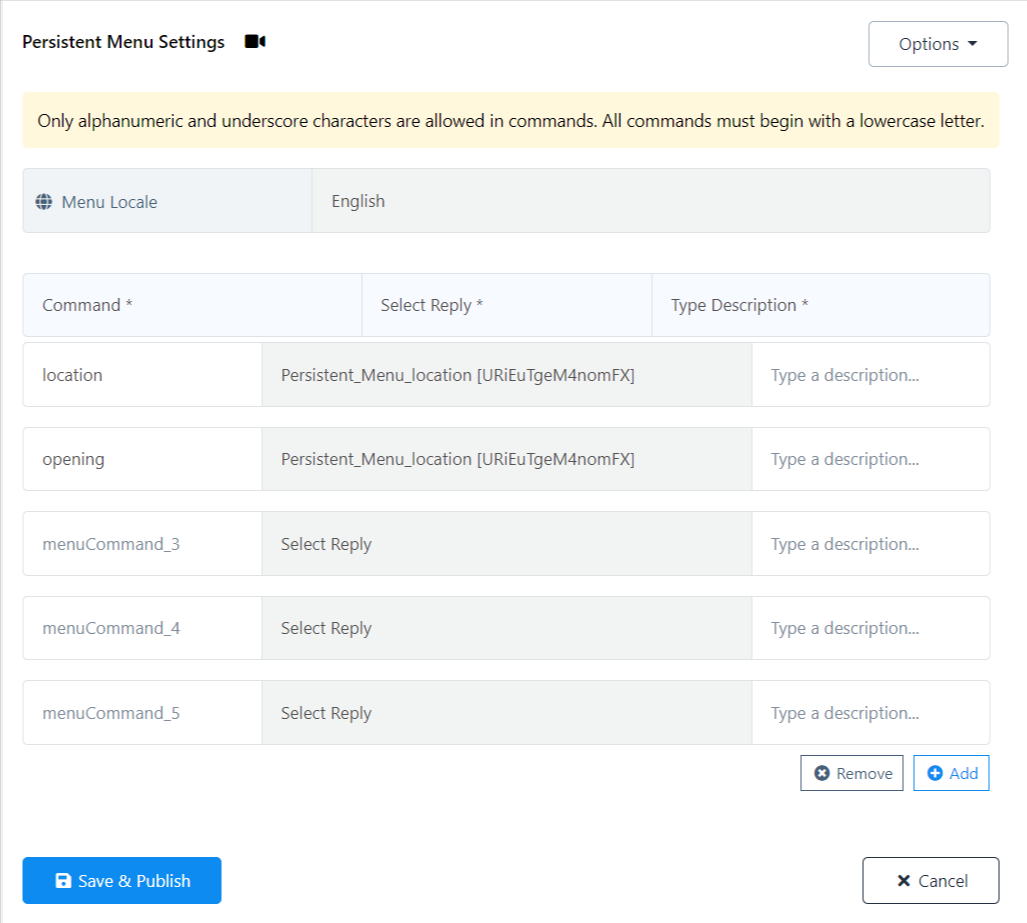- Proporcione un nombre para el comando de menú.