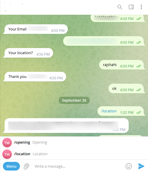 Para acceder al menú persistente, los suscriptores deben abrir Telegram y seleccionar la cuenta de bot que deseen. El menú persistente estará disponible para la navegación.