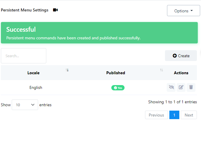 - Haga clic en el botón "Guardar y publicar". Un mensaje de éxito confirmará la creación y publicación del menú persistente.