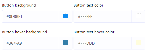 - Especifique colores para el fondo del botón del widget de chat, el color del texto del botón, el fondo del botón y el color del texto del botón.