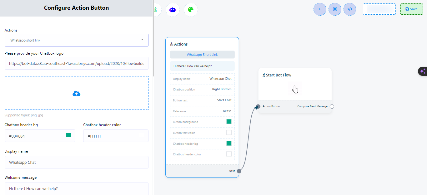 - Haga clic en el botón "Guardar" para conservar las configuraciones del widget de chat.